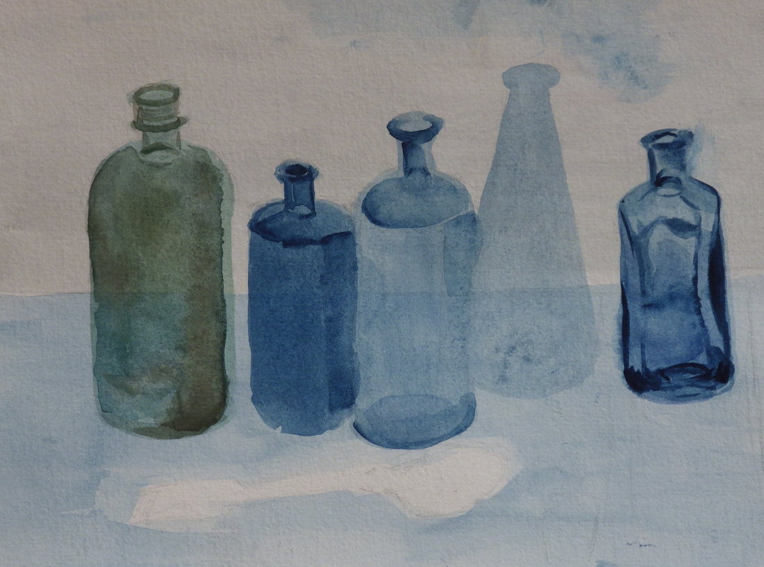 Painted in 2018. Referenced an image of glass bottles.