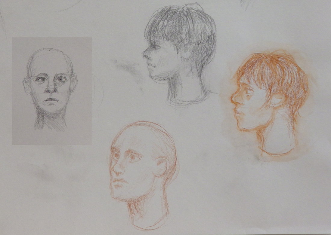 Portrait study View full size Drawn in 2018. Using pencil and watercolour pencil to sketch a human face.